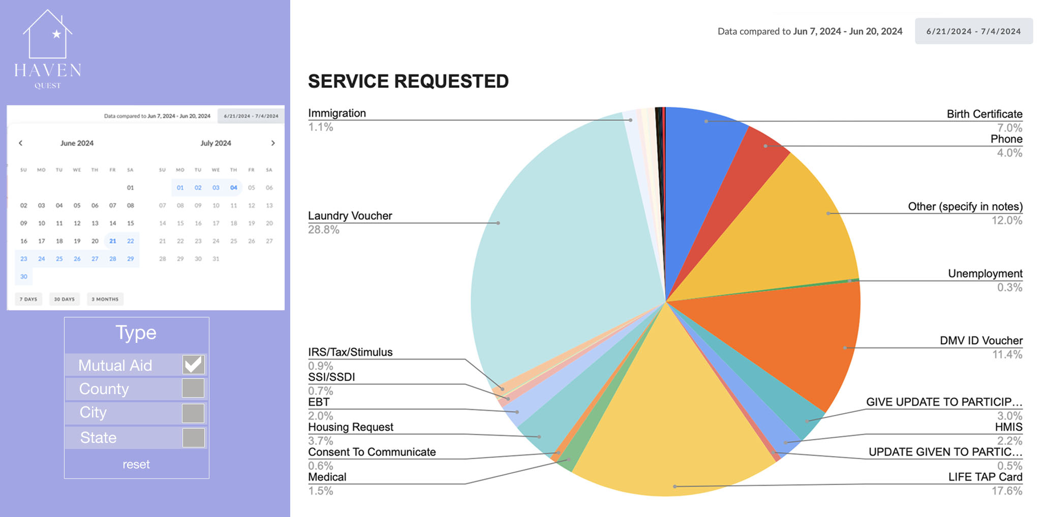 The Haven Quest dashboard can generate easy to digest graphs and charts for nimble review and decision making.